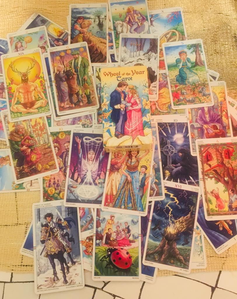 Tarot de las cuatro estaciones con Árcanos mayores y menores, Estas cartas en las lecturas nos argumentan un cuento de nuestra propia vida. Por sus dibujos tan peculiares y colores.